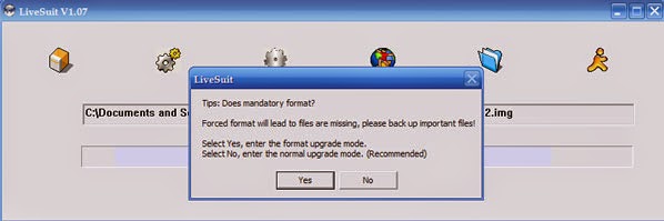 - Chạy file LiveSuit.exe => YES => FORMAT => NEXT => YES => Chọn file rom cần up.